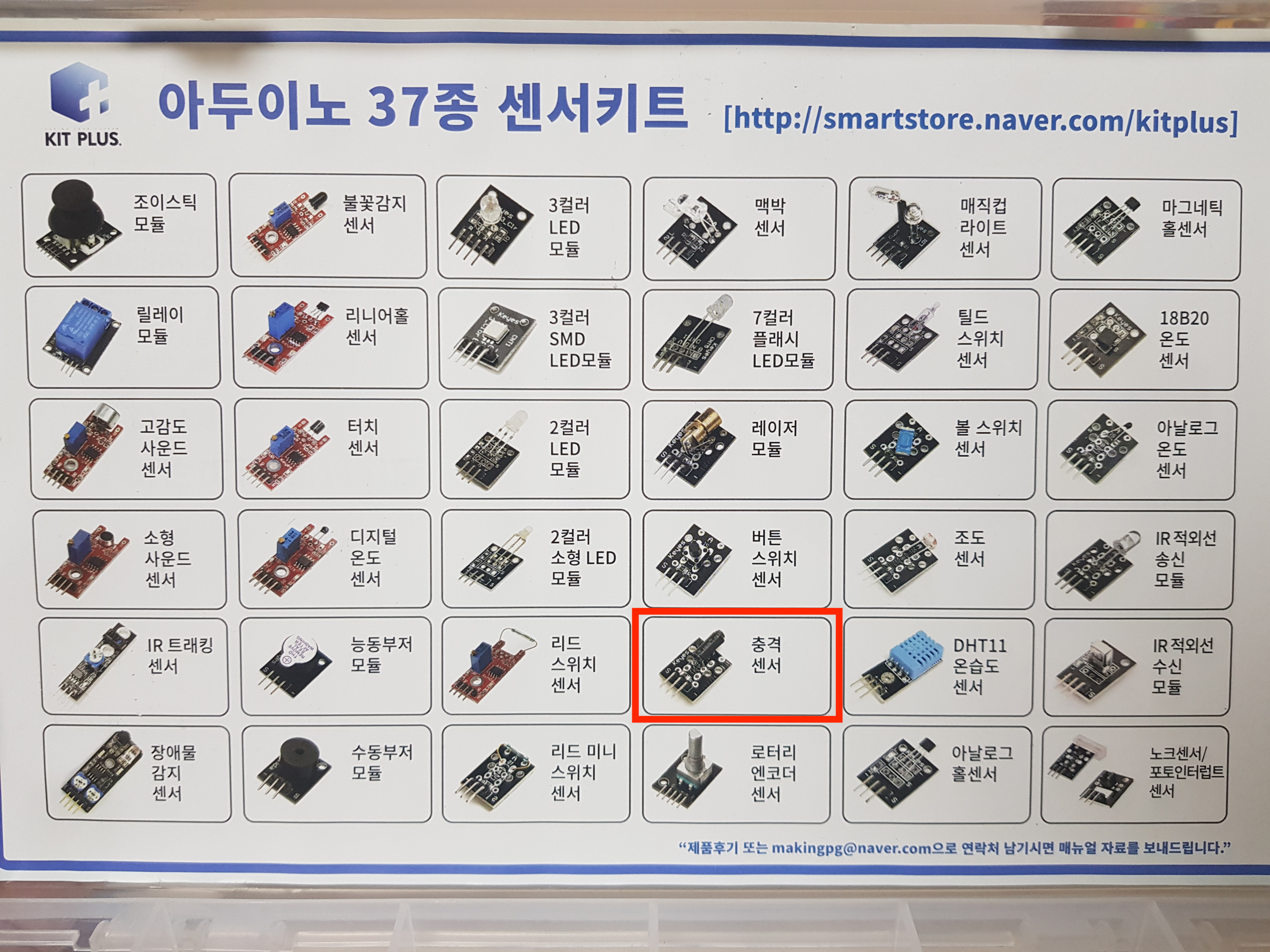 오늘은 37종의 센서 중에서 충격 센서(진동센서) 사용법을 정리해봤습니다.