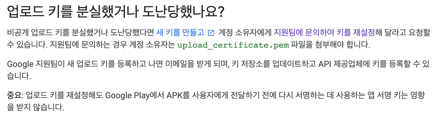 "업로드 키를 분실해서 재설정 하고 싶습니다. upload_certificate.pem 파일을 첨부하니 확인해주세요." 정도로 작성하시면 됩니다.