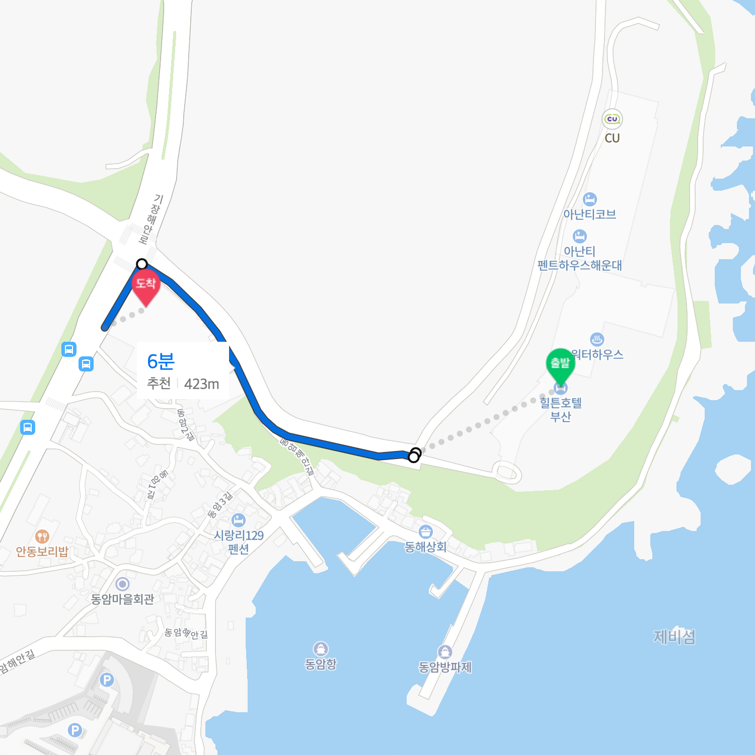 아난티코브/힐튼호텔과 대게만찬은 도보로 6분 정도 거리에 있습니다.