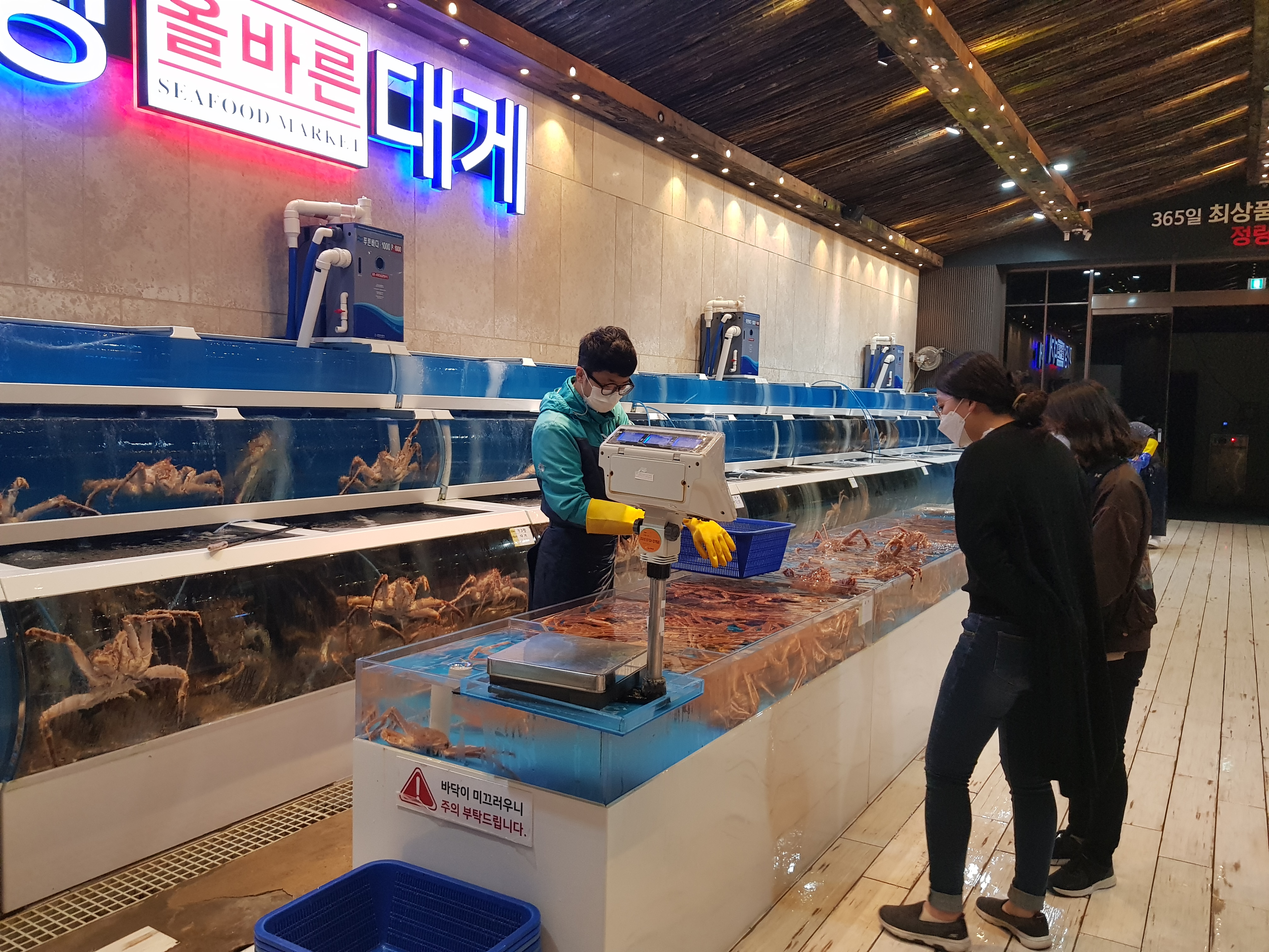 화살표 따라 가면 가장 올바른 대게라는 대게 구입하는 곳이 있습니다.