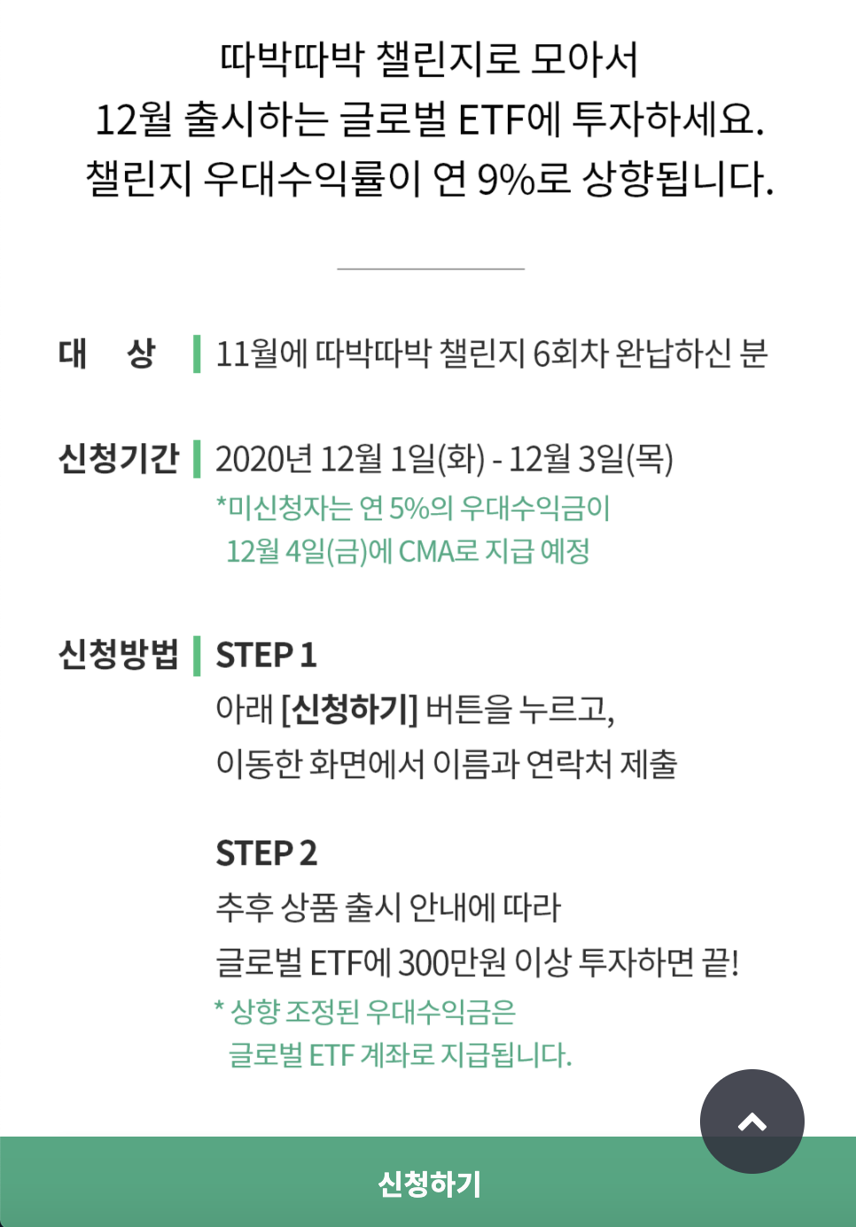 저는 있는 돈 다 긁어모아도 300만원이 안되기 때문에 포기했습니다. 제가 직장인이라면 했을 텐데 너무 아쉬웠네요;ㅅ; 아직 따박따박챌린지가 끝나지 않은 분들은 생각해보시고 9%로 올리는 것도 좋은 선택인 것 같습니다.