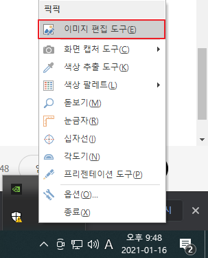 픽픽은 이미지 편집도 손쉽게 가능합니다. 기존 이미지를 편집할 때 많이 사용하는데요, 픽픽은 바탕화면 아이콘을 클릭해서는 실행이 되지 않습니다.