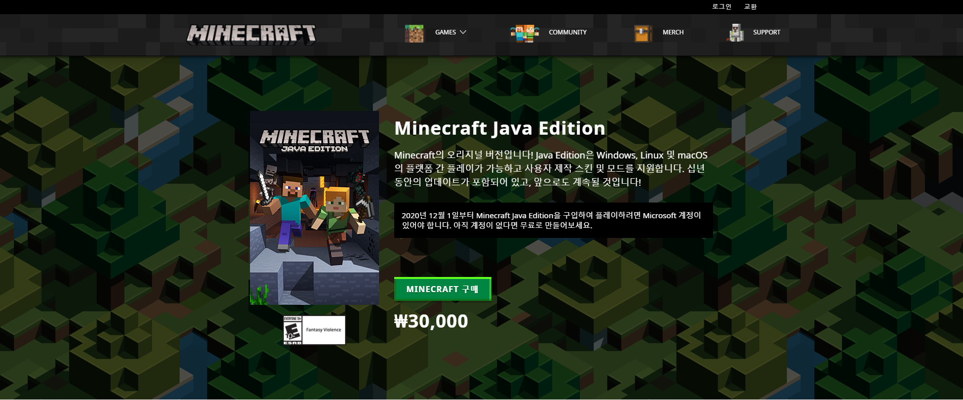 마인크래프트는 4년전이나 지금이나 똑같이 3만 원으로 판매되고 있습니다. 물가상승률을 고려하지 않고 똑같이 3만 원에 판매하는 게 신기하네요.