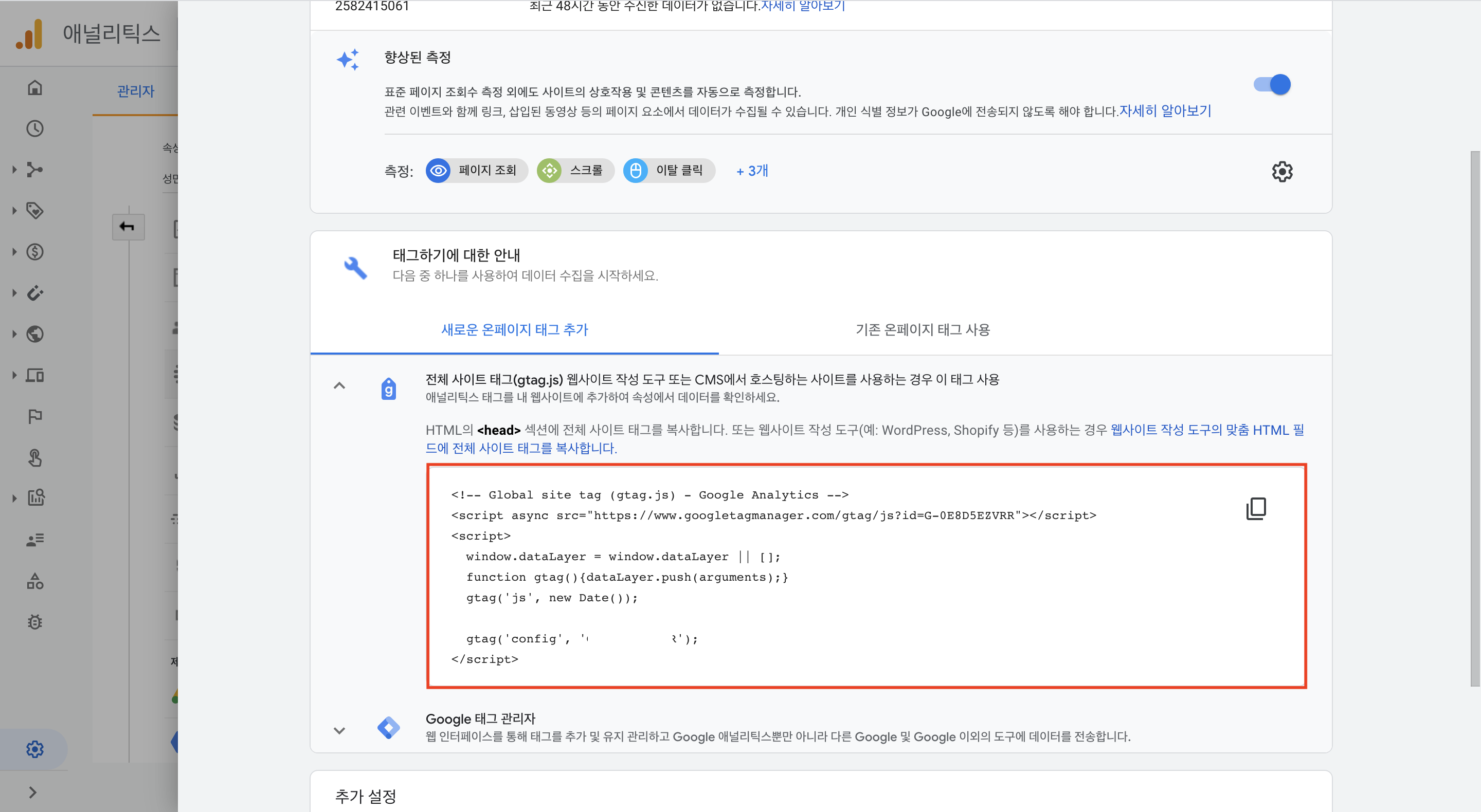 원하는 항목을 클릭하고, 아래의 태그 하기에 대한 안내를 클릭해서 추적 코드를 확인합니다.