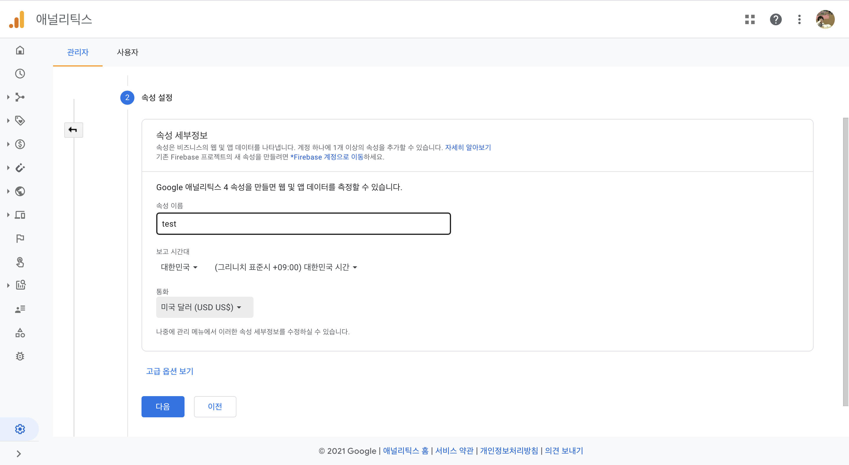 새로운 계정을 만들 때 주의사항은 보고 시간대를 원하는 국가로 설정해야 한다는 것입니다. 저는 대한민국 기준 0~24시로 보고 받기를 원해서, 보고 시간대를 대한민국으로 설정했습니다.