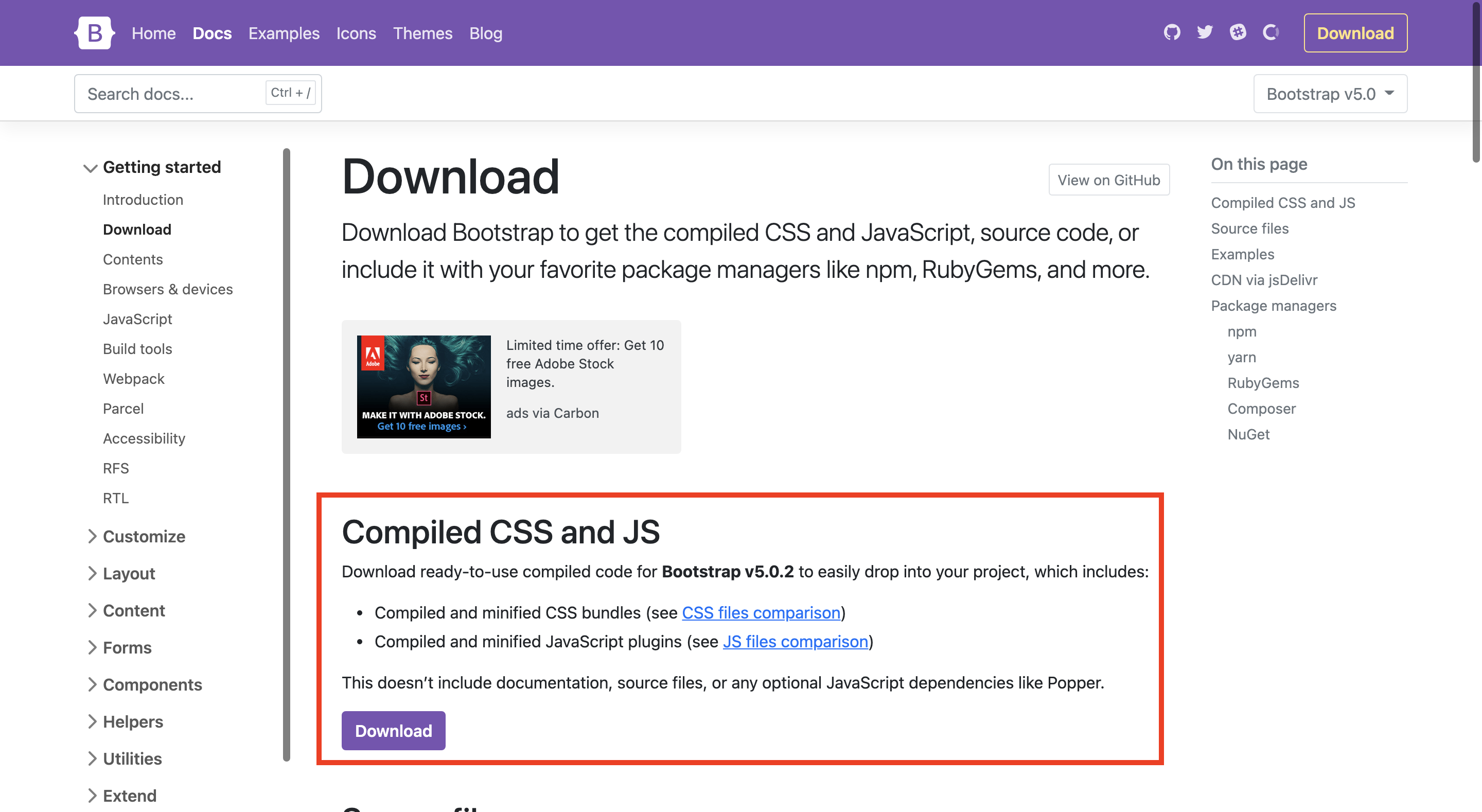Bootstrap 공식 홈페이지에서 Compiled CSS and JS를 다운받습니다.