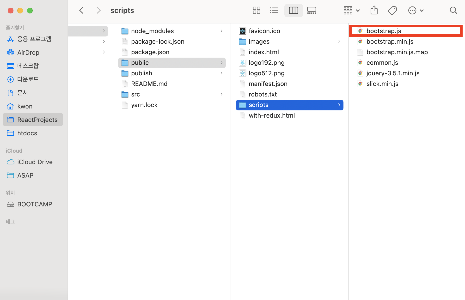 public 폴더 내에 scripts 폴더를 생성한 뒤 bootstrap.js를 복붙합니다.