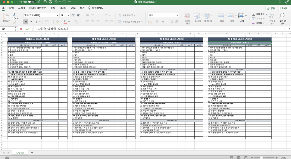 정리한 체크리스트는 엑셀 문서로 만들어서 출력해서 가지고다녔다.