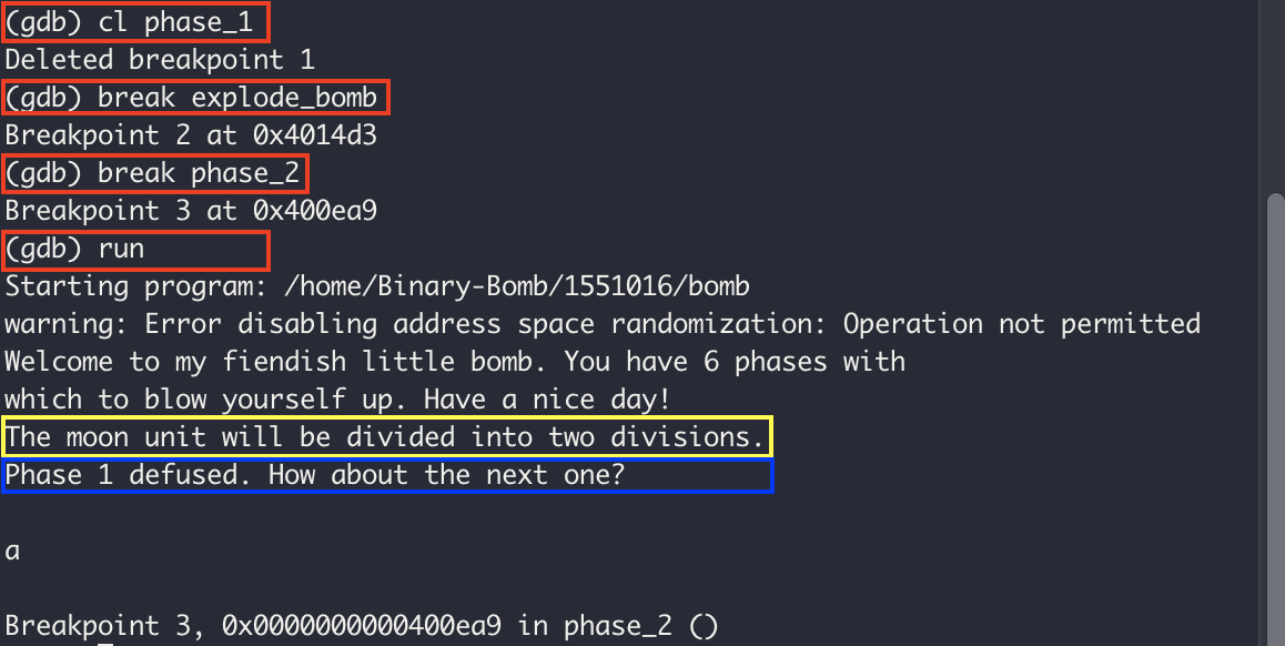 bomb이 터지는걸 방지하기 위해 explode_bomb과 phase_2에 break를 겁니다.
