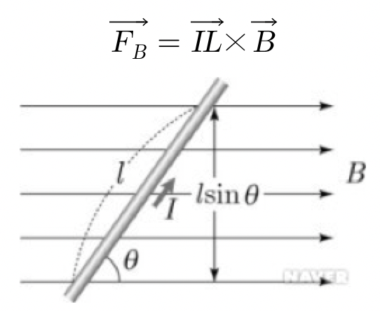 전류의 방향과 자기장 사이의 각을 라고 하면 자기력의 크기는