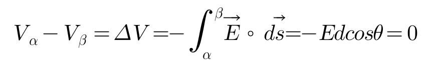 같은 등전위선 상에 거리가 d인 두 점 α와 β를 잡으면 전위차는 다음과 같다.