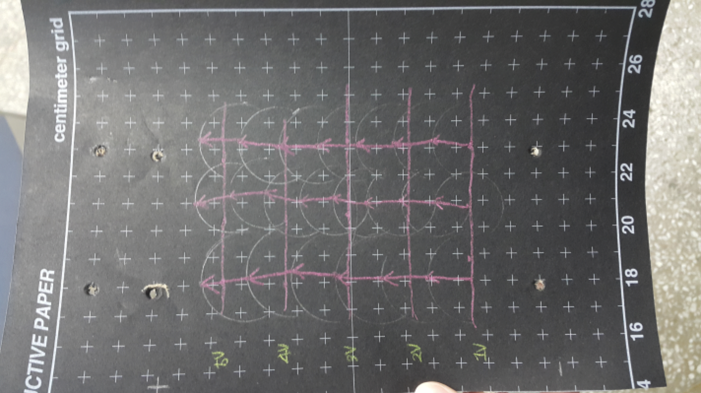 5. 여러 개의 등전위선을 1V의 전위차 간격으로 찾아서 4의 과정을 반복한다.