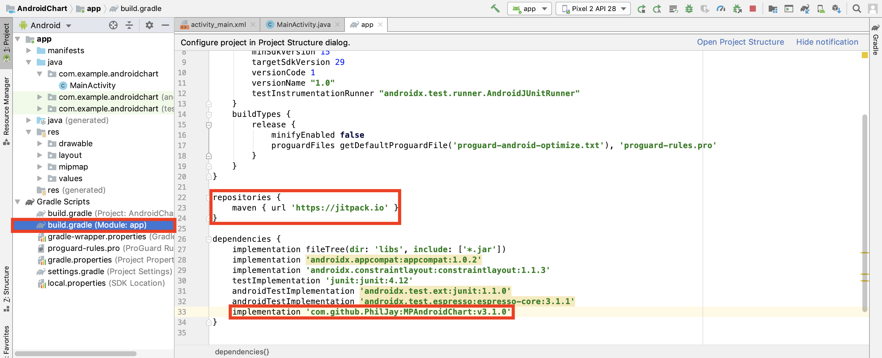 implementation 'com.github.PhilJay:MPAndroidChart:v3.1.0'