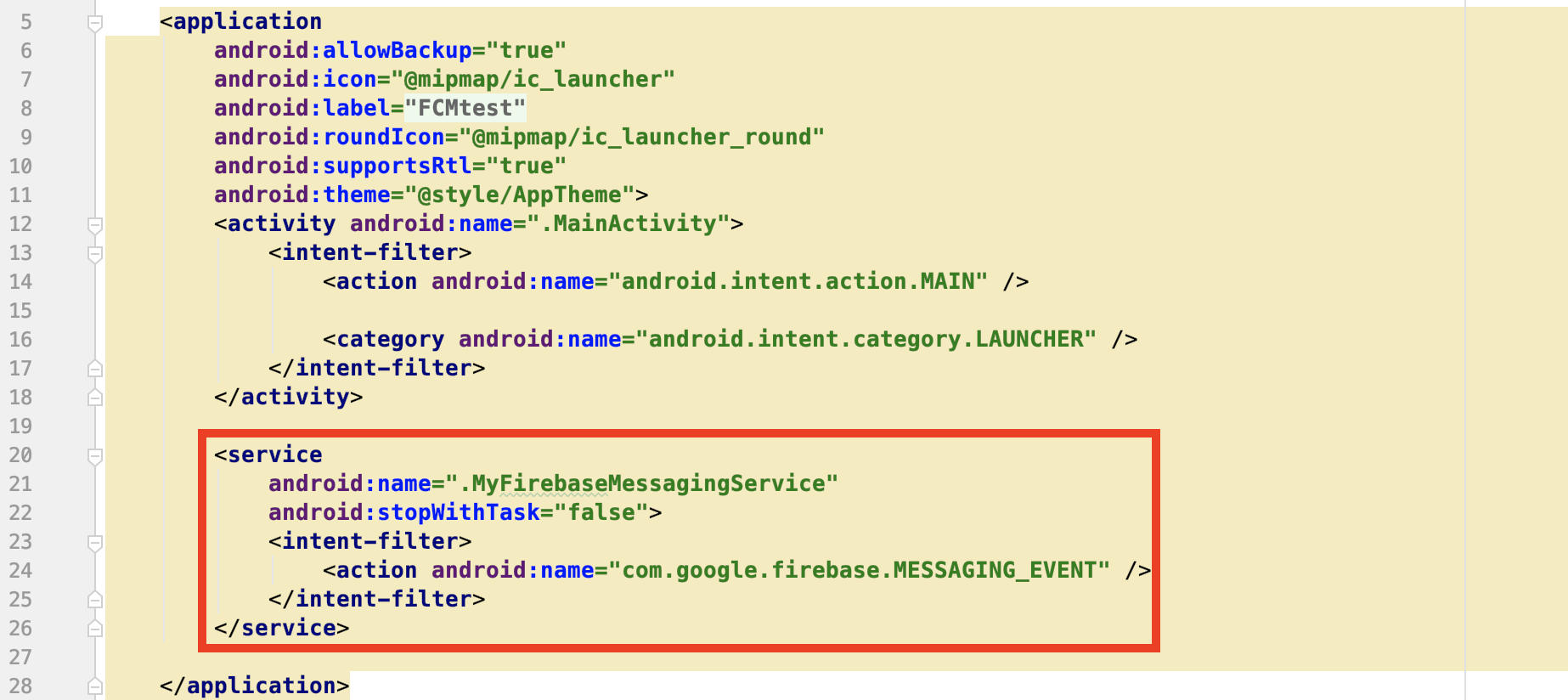 android:name=".MyFirebaseMessagingService"