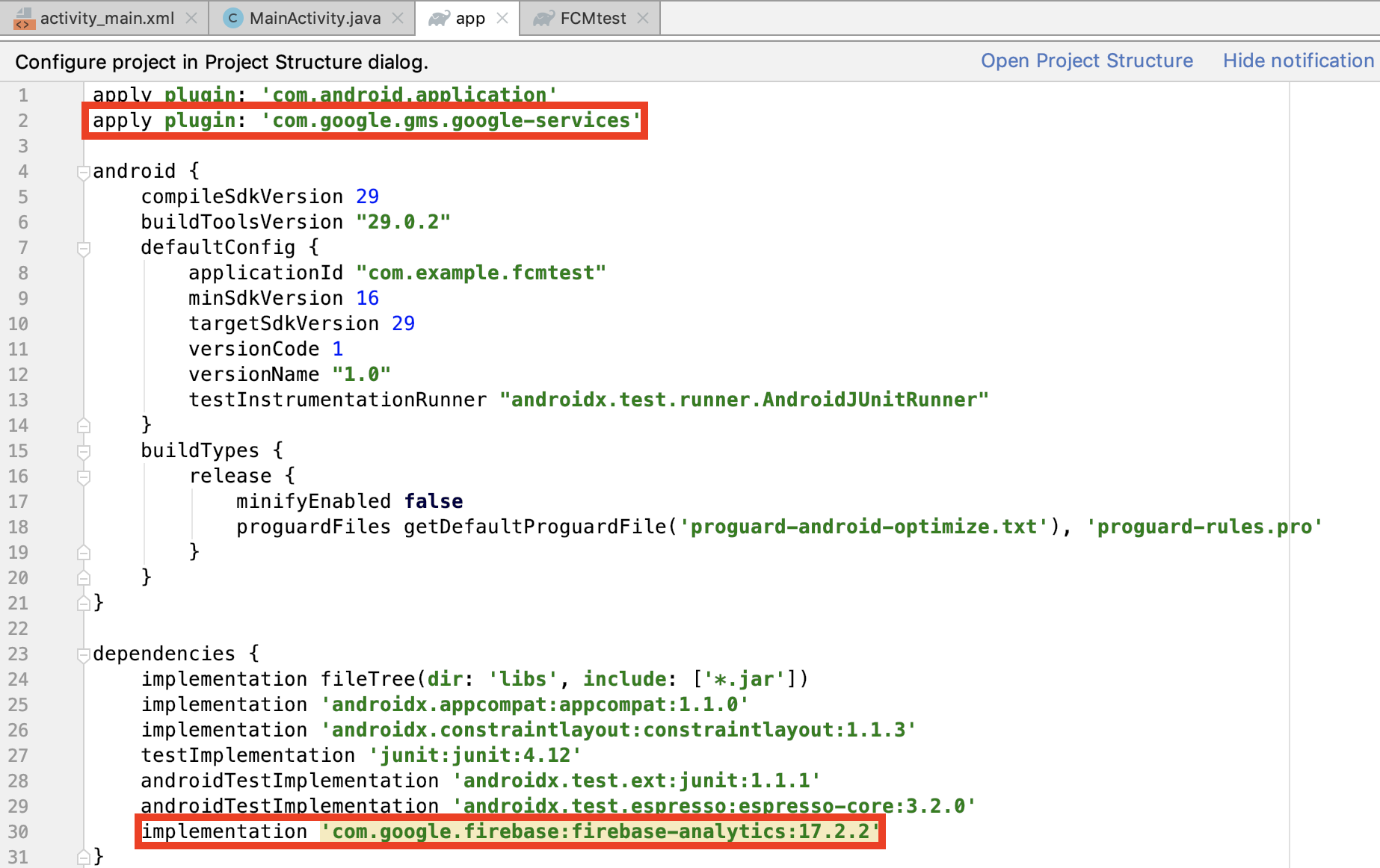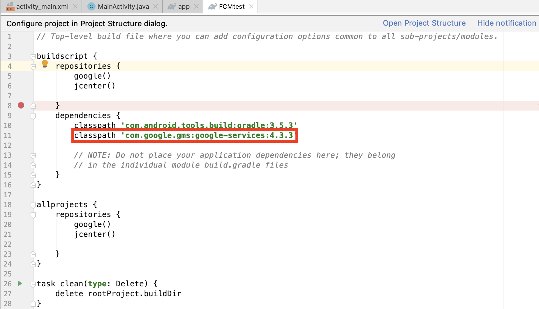 Sync now를 했을때 문제가 없다면 FCM을 사용하기 위한 설정이 완료되었습니다.