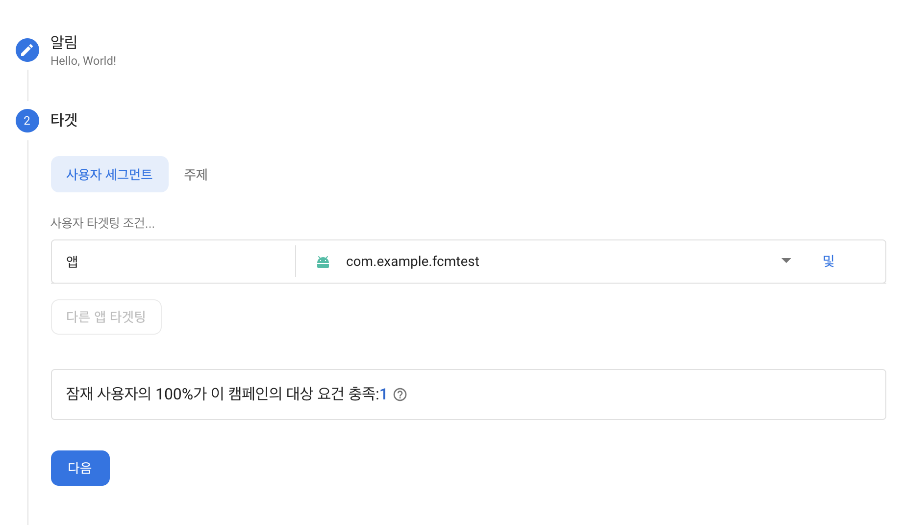 앱이 실행되고 나면 Firebase로 돌아가서 다음을 누릅니다.