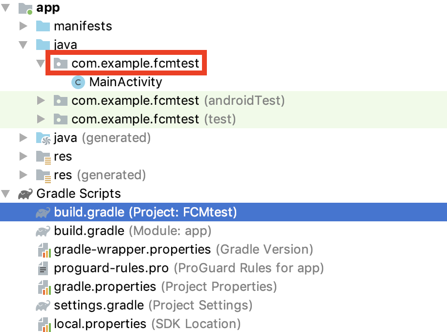 안드로이드 패키지 이름은, 자신의 프로젝트에서 아래 빨간색 네모가 쳐져있는 부분의 이름을 말합니다.