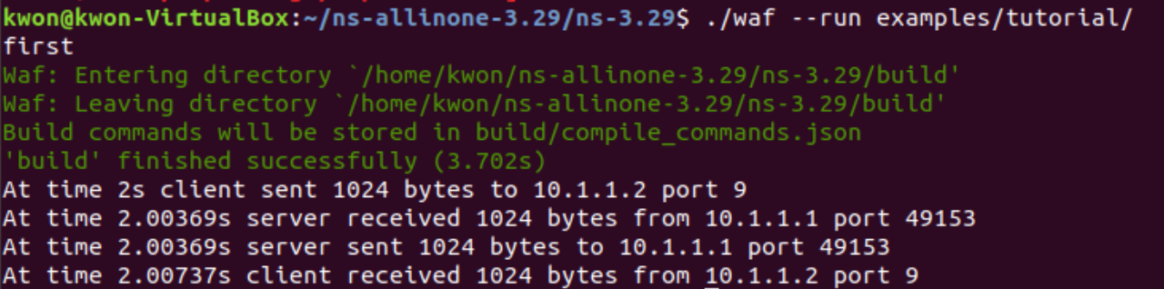이번에는 examples/tutorial에 있는 first.cc파일을 돌려보겠습니다.