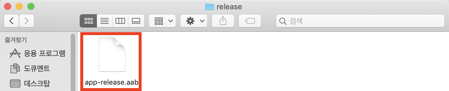 그리고 나서 프로젝트 폴더>app>release를 열면 아래와 같이 app-release.aab라는 파일이 있습니다.