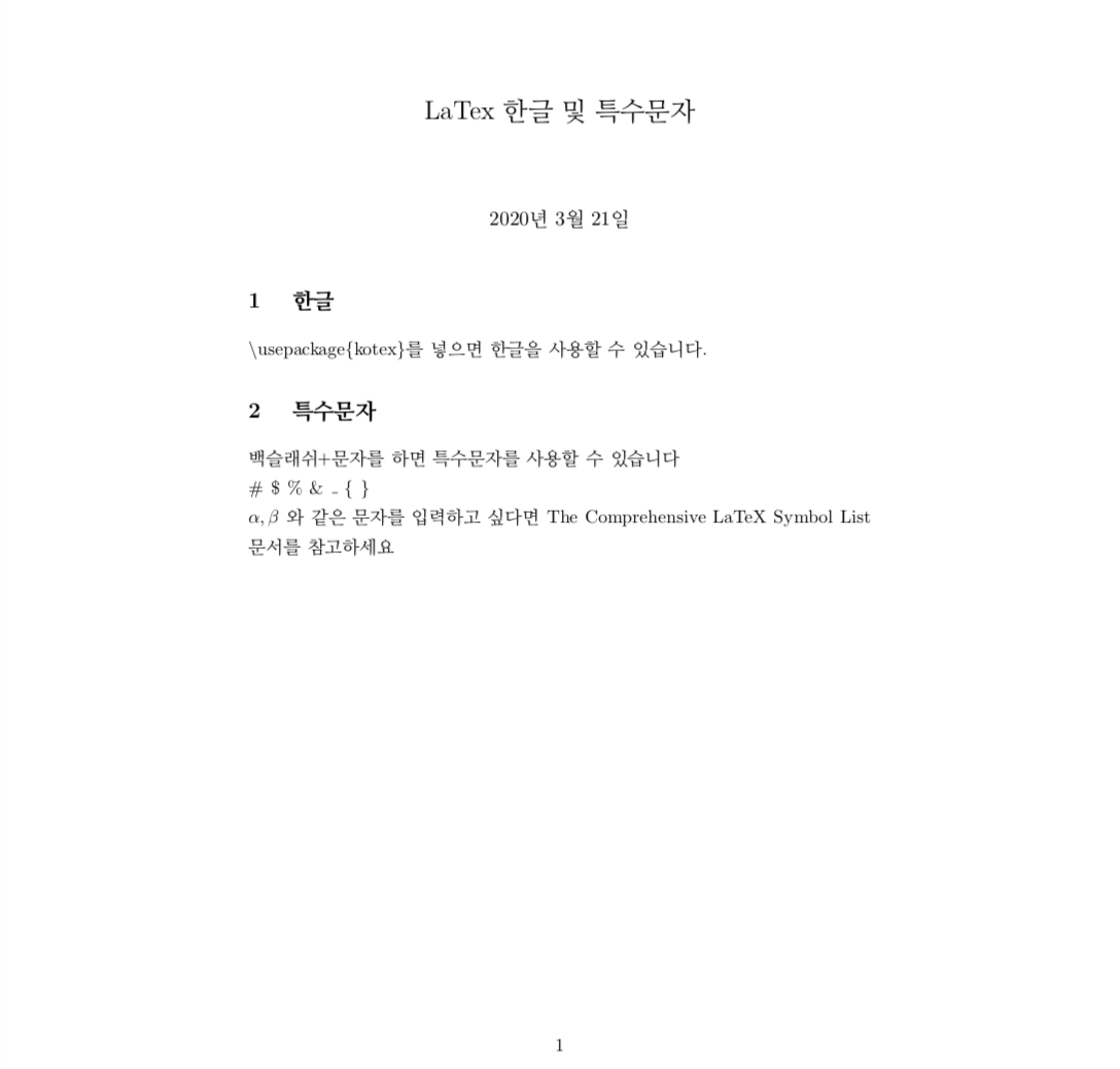 \title{LaTex 한글 및 특수문자}